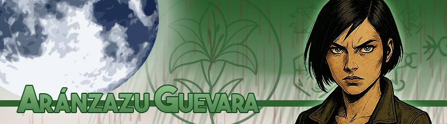 Aránzazu fue una de las protagonistas de Heaven’s Gate durante sus tres primeras temporadas; fue una Garou de la tribu Hijos de Gaia cuya existencia estuvo atravesada por el sufrimiento, la búsqueda incesante de identidad y una tenaz voluntad de decidir su propio destino. Aunque fue concebida como parte de un ritual oscuro impulsado por entidades corruptas, su vida estuvo dedicada a encontrar sentido más allá de la manipulación y la violencia. A lo largo de su camino, Aránzazu demostró compasión, integridad y un poder espiritual inusual. Su historia comienza en la selva brasileña y culmina trágicamente en Dinamarca, pero su eco emocional permanece entre los que fueron tocados por su paso.